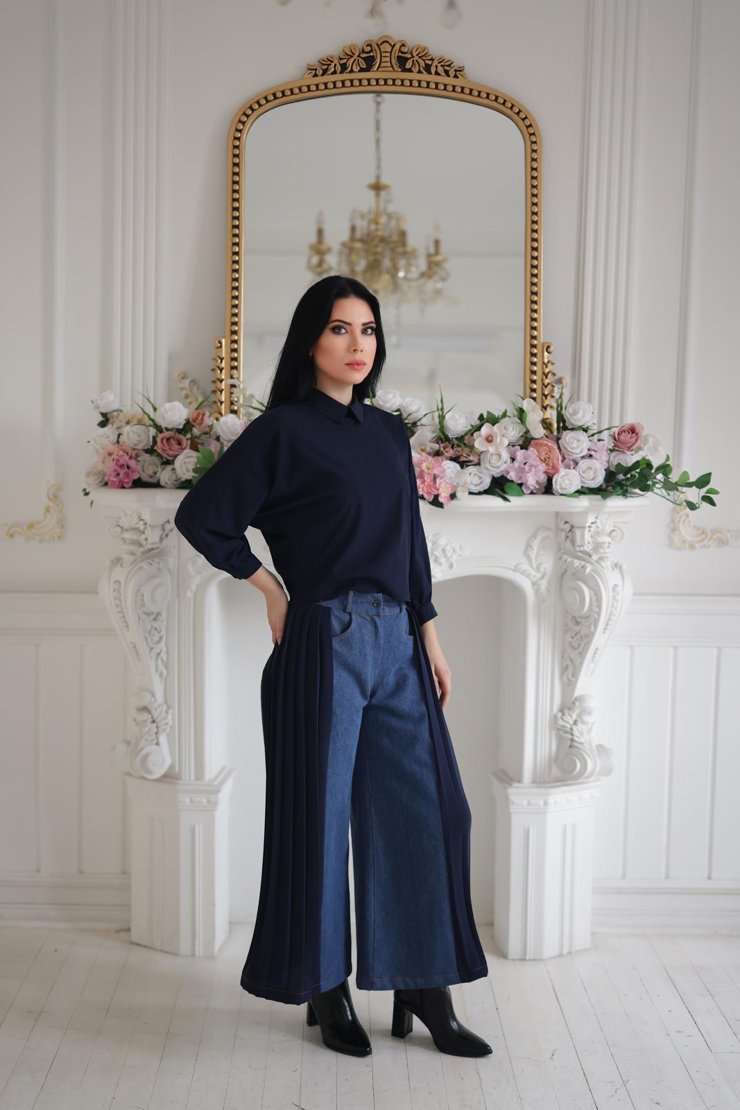 PLİSE DETAYLI, BOL PAÇA KOT PANTALON