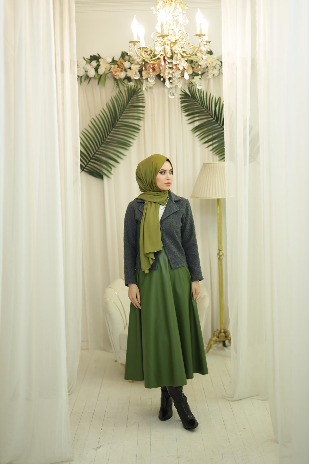 TUVİD CEKET YEŞİL DERİ MAXİ ETEK